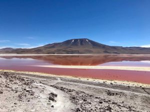 Laguna Colorada is a red colored salt lake, also because of the presence of minerals.