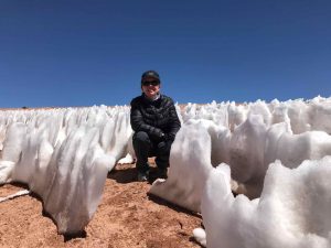 We are told that this area was covered by ocean water 40 million years ago. It has produced layers of salt and lakes, eleven of them beneath the surface. The salt is around 120 meters deep at the deepest point. We make a brief stop at some bubbling water. The oxygen in the water below produces a “fizz” that eventually spews bubbles to the surface from the pressure.