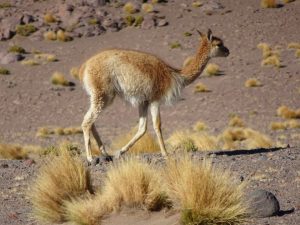 Once we leave the salt flats we drive across a plain surrounded by old volcanic mountains. We see more llama and vicuna along the way!