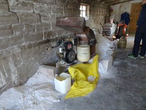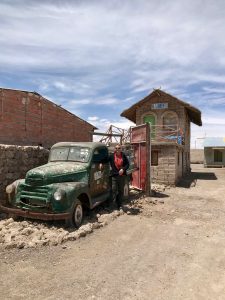 We drive a bit further outside of Uyuni to the small town of Colchani and the salt factory. Colchani is the primary entrance to the salt flats in the area. It’s considered one of the most important communities in the area for having a salt factory with a capacity to extract 20.000 tons of salt per year. No salt is exported. It is mined for human consumption and for building salt hotels for tourists, lol. Ninety percent is for human consumption. We see the rather crude process by which the salt is processed and bagged. We pick up a couple very small bags for souvenirs.