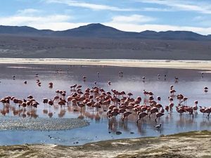 Our 3-day adventure is at altitudes all above 12,000 feet and as high as 16,000 feet. The salt flats sit at an elevation of nearly 3,700 meters (12,000 feet). The Bolivian Altiplano is so beautiful, but it’s also said to have extreme conditions. It is isolated, far from anything. You won’t find the Ritz hotel, but the rustic environment adds to the adventure. Most of the hotels on the flats themselves “power down” at 10 pm to conserve electricity.