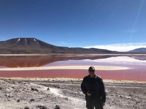 Our guide and driver prepare our lunch of salad, pasta, chicken and pears for dessert. After lunch, we drive about ten minutes to the Bolivian-Chilean border. We knock on the door of the Bolivia migration office and have our passports stamped. The immigration agent asks us how much we paid for our Bolivian visas at the Bolivian Embassy in Florida. It was $160. Apparently, it is twice that if you do it at the Bolivian border. He said that many people believe they are being scammed at the border. For some reason, he said the embassy on the US discounts it and he is not sure why…but it causes confusion. Anyway, we pass through without a hitch.