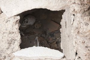 Skulls and bones remain and can be seen through holes and cracks in the coral tombs. It is amazing to think this area was once covered by oceans that left these coral formations.