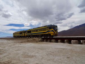 We are close to the Chilean border and there is a small Bolivian military outpost here. There is also a railway that runs through here and we actually see a train come through…two engines.