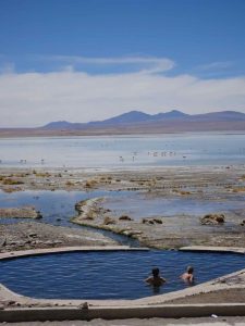 We continue across the small salt flat and into the hills passing many volcanoes, mostly dormant.