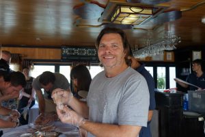 This of course worked up an appetite and we were served an outstanding lunch of baked fish, fish cake, satay, spring rolls, rice, prawns and fresh fruit for dessert. After lunch, a short cruise, swimming, a siesta and a visit to a pearl farm.