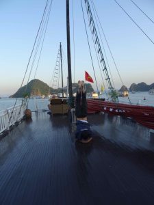 We started our final day in Ha Long Bay with a bit more Tai Chi on the top deck, followed with more breakfast pho.