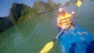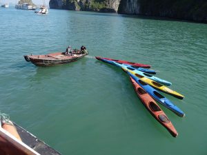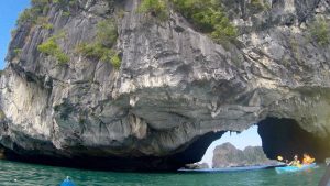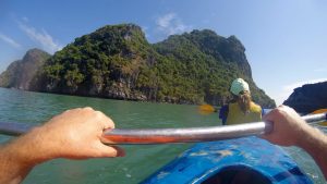 After the cave exploration we boarded two person kayaks and paddles among the giant formations and dozens of tour boats like ours throughout the bay. A neat feeling to be padding in the awesome sea and unique geological formations.